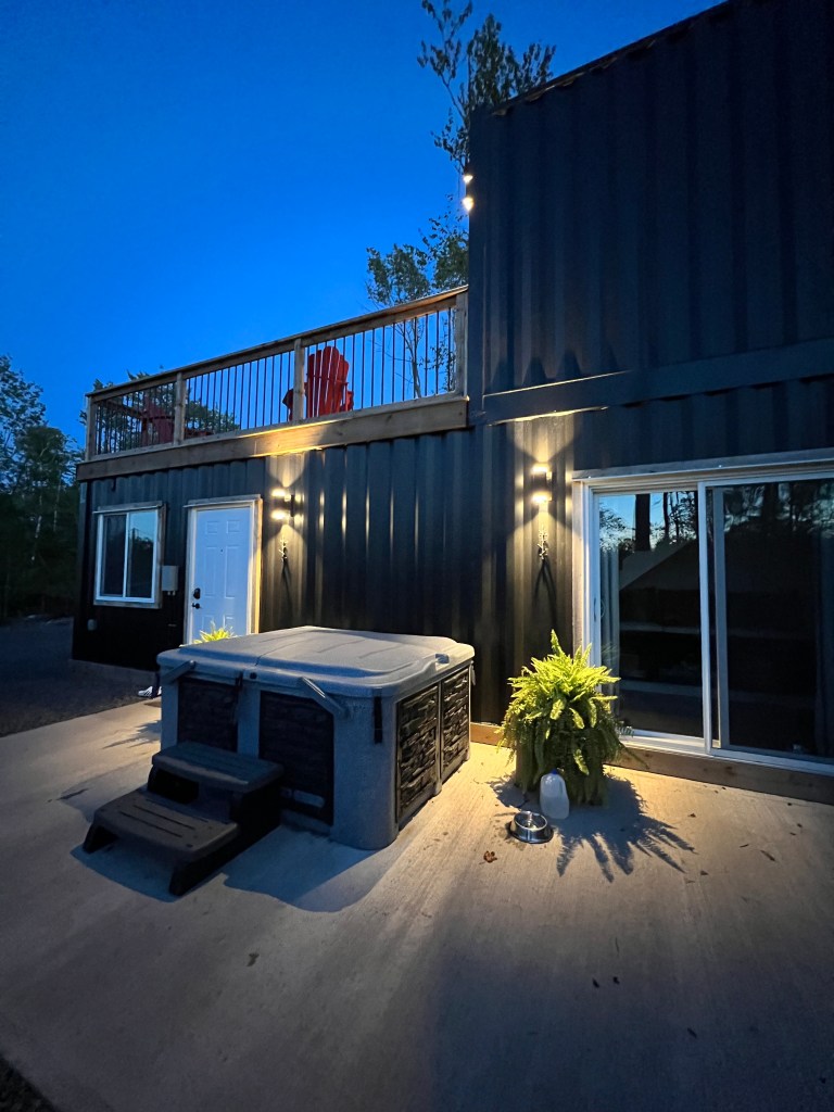 Glamping is definitely our preference, we love our creature comforts. So we stayed in the Hemlock: a two-story, fully-equipped-kitchen, hot-shower, rooftop-patio, private-hot-tub shipping container cabin. And LOVED it. Honestly it has everything one could need, down to linens, towels, a Keurig, and shower essentials.